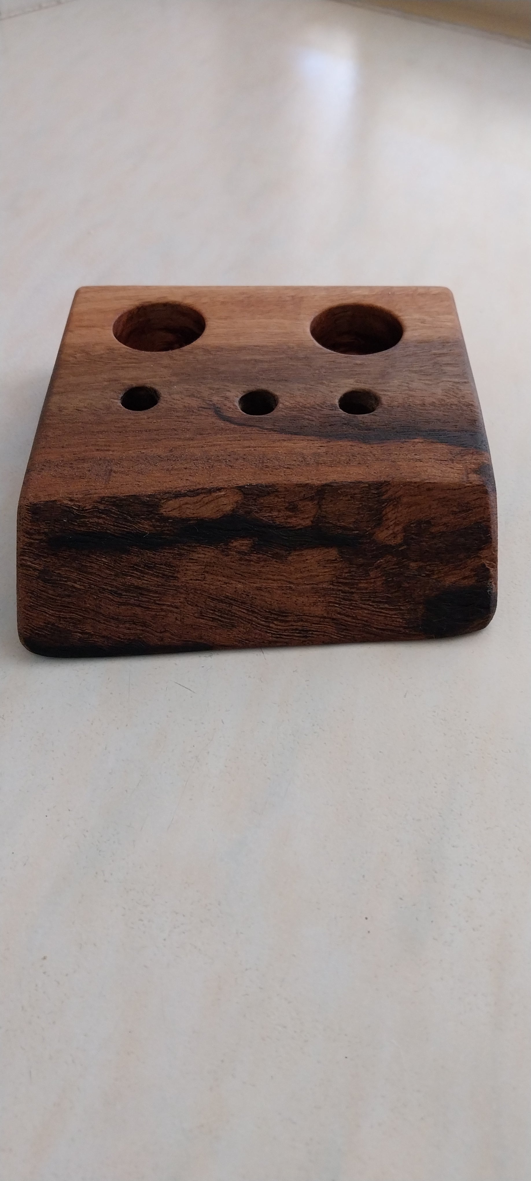 The stand have been finished with a food safe oil which provides protection, and the stand is made from Marri.