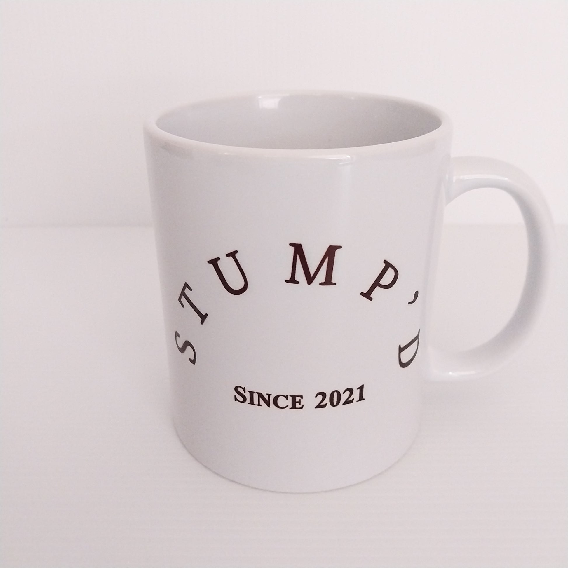 Large, handled mug with a 300ml capacity and the original Stump'd Since2021 Branding.